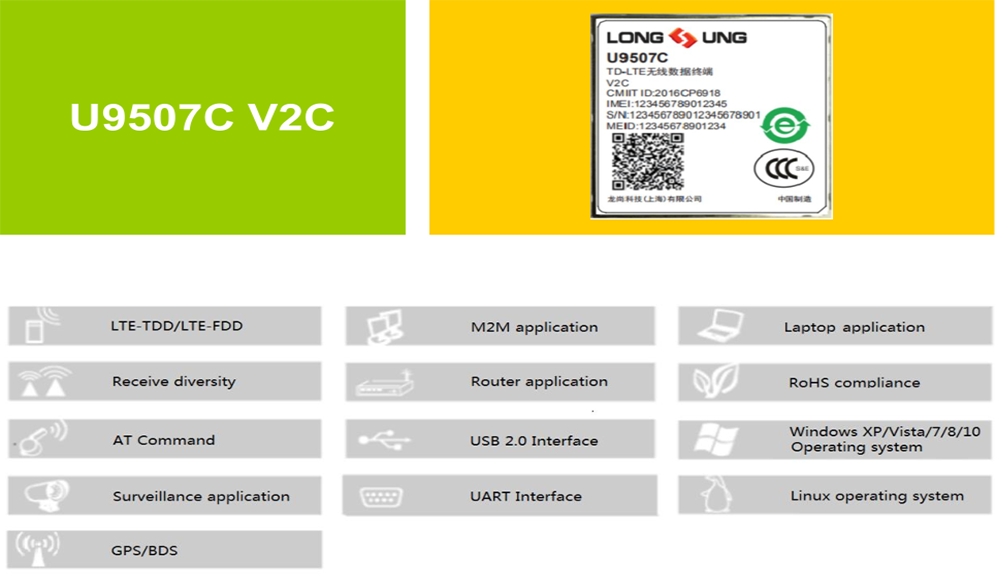 U9507C V2C 是深圳商务科技推出的一款 Open linux LTE Cat4 无线通信模块,内置丰富的网络协议,集成多