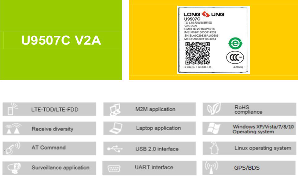 U9507C V2A 是深圳商务科技推出的一款 LTE Cat4 无线通信模块,内置丰富的网络协议,集成多个标准接口。