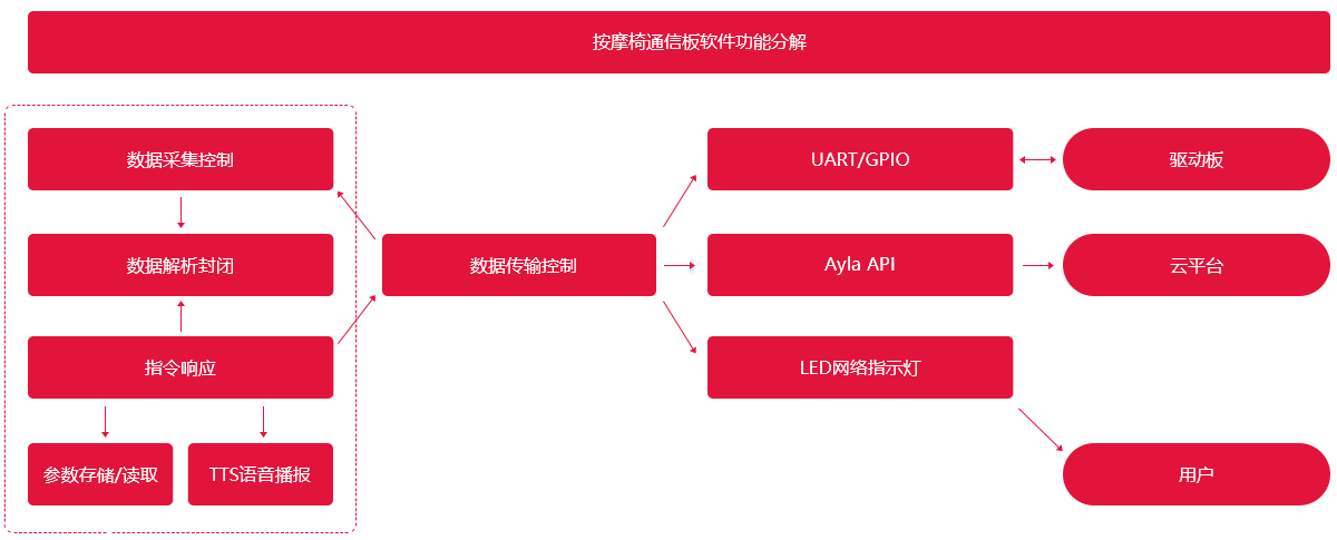 按摩椅核心控制板就通讯模组的位置配置了双核1.5G主频的计算能力,承担起按摩椅本身数据采集、管理、传输和备份的控制任务,大大减轻了云端集中计算的压力。